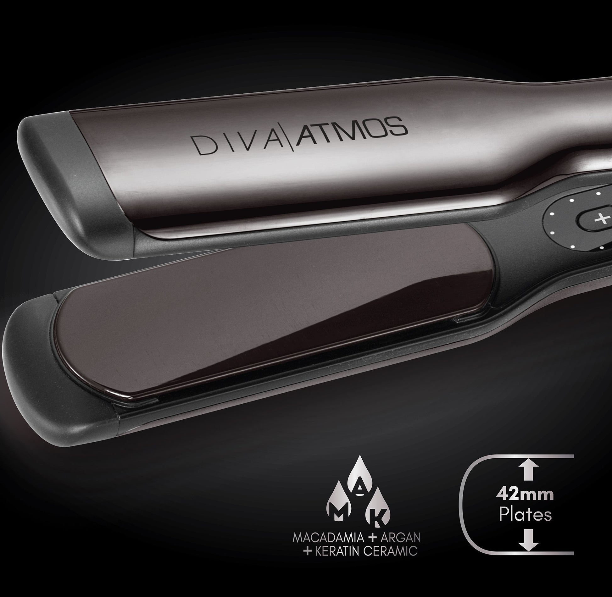 Diva Professional styling Atmos wide 42mm provides adaptive heat technology for faster heat recovery and enhanced shine.